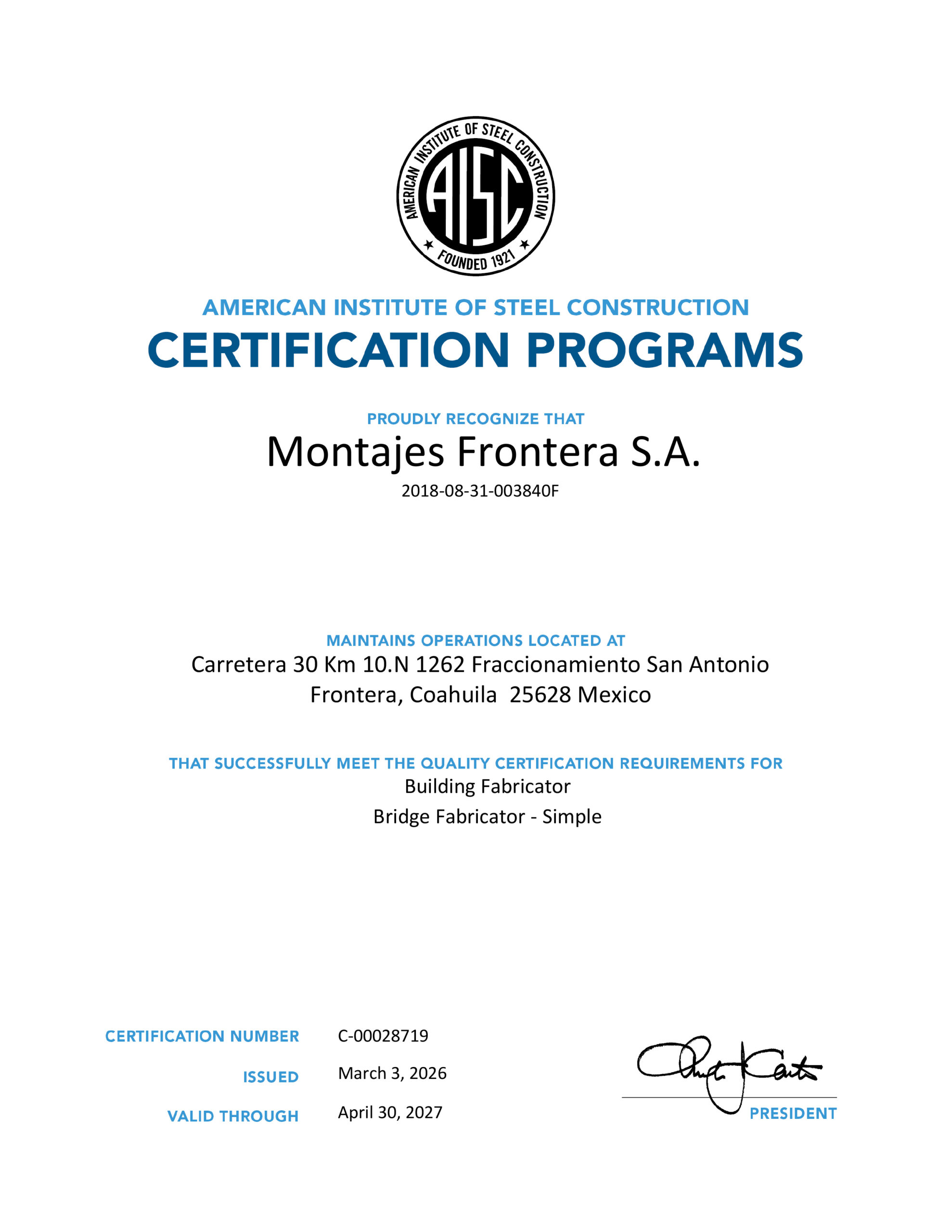 Fabricamos estructuras metálicas alineadas a normas y estándares del sector, respaldadas por certificaciones internacionales que aseguran confiabilidad y cumplimiento técnico.